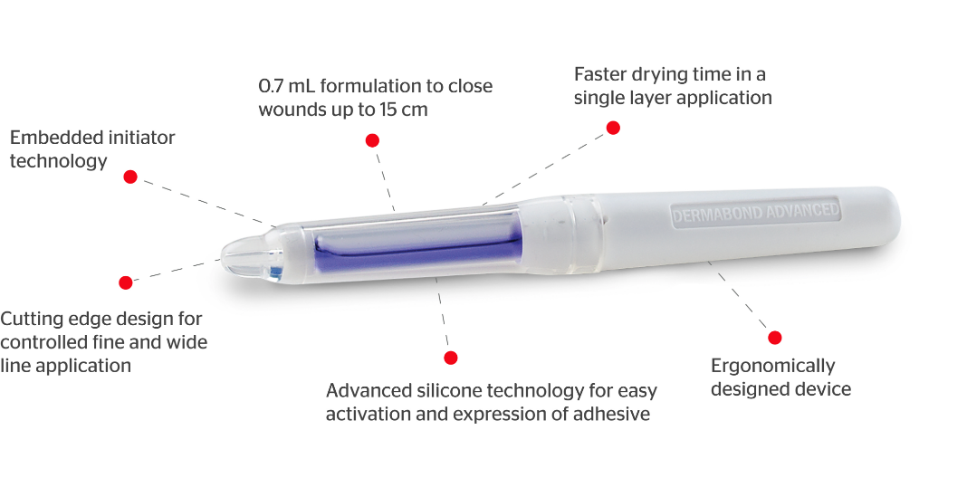 DERMABOND ADVANCED Adhesive provides strength to maintain barrier and wound closure integrity. DERMABOND ADVANCED is demonstrated in vitro to kill 99.9% of bacteria (MRSA, MRSE, and E. coli) on direct contact.